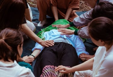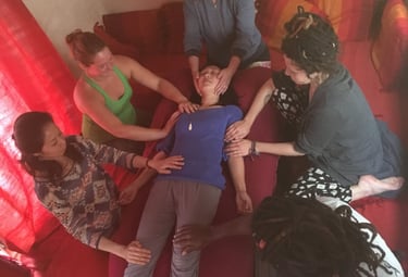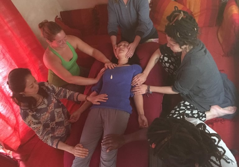 レイキの初歩のワークショップ。アチューンメント(エネルギーを通す儀式)を受けることで、2日間(約10時間)で自分にも他人にもレイキヒーリングを施すことができるようになります。