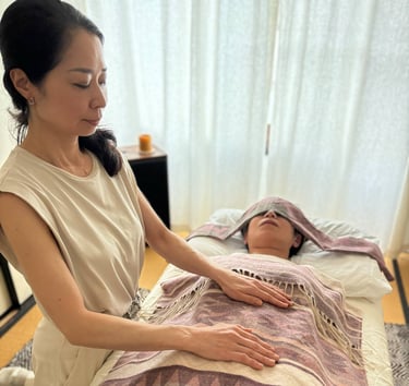 施術側は、宇宙に限りなくあるエネルギーにアクセスしそれを体内を通し手から流すため、自分のエネルギーを消耗することなく、気持ちよく施術ができます。2人で行う瞑想のようなもの、とも言えるかもしれません。